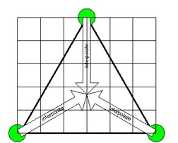 We zien hier een driehoek uit een 3D object dat enkele pixels beslaat. Bij vertex lightning wordt nu voor ieder hoekpunt (ofwel vertex) van de driehoek de juiste belichtingswaarde berekend! In principe is vertex lightning gewoon de L uit T&L! (Zie nogmaals het artikel ‘Hoe werkt een 3D grafische kaart? – Deel 1’!) Deze berekening is dus volledig interactief met de verschillende lichtbronnen. Dat houdt in dat de 3D chip de hele tijd voor ieder hoekpunt berekent hoe ver de verschillende lichtbronnen zich van het hoekpunt bevinden en wat de intensiteit van de verschillende lichtbronnen is. Zo krijgen we voor ieder hoekpunt een nauwkeurig berekende belichtingswaarde.