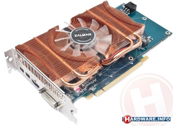Een nieuwe naam in videokaartenland: koelerspecialist Zalman verkoopt sinds enige tijd ook videokaarten gebaseerd op AMD GPU's. Hierbij voorzien met standaard kaarten van een koeler uit eigen stal. Zo ook bij deze Radeon HD 7770 kaart, waar men gekozen heeft voor de eigen VF1000 koeler. Eerst de kaart zélf: de PCB is gelijk aan AMD's referentieontwerp en ook de klokfrequenties zijn ongemoeid gelaten op 1000 MHz voor de GPU en 1125 MHz voor het geheugen. De aansluitingen zijn dual-link DVI, HDMI en twee maal mini-DisplayPort. De koeler is gemaakt van koper en bevat vier heatpipes. Dat belooft veel goeds, maar de praktijk is weerbarstig. Met temperaturen boven de 60 graden is deze Zalman de warmste 7770 van het stel en dat met de laagste klokfrequenties! Is de koeler dan erg stil? Ook niet; 37,1 dB(A) op 10 centimeter afstand is zeker niet slecht, maar Sapphire doet dat beter. Een prijs van de Zalman kaart hebben we nog niet, maar zelfs zonder die te kennen mogen we concluderen dat Zalman niet je eerste keus moet zijn.