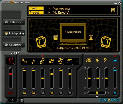 Een van de belangrijkste configuratie schermen is Creative's surround mixer: