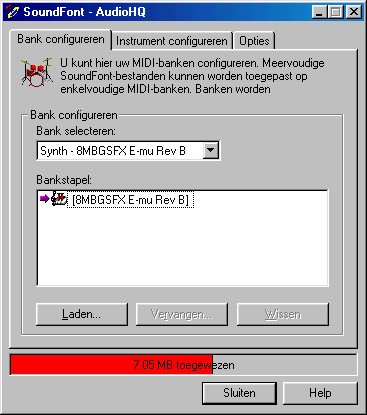 Voor MIDI configuratie dient het SoundFont controle paneel. Hier kunnen de verschillende geluidsbanken worden geladen.