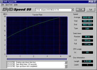 Voor deze test hebben we gebruik gemaakt van de benchmark programma’s CD-Speed en DVD-Speed, geschreven door Erik Deppe. Beide programma’s testen de doorvoersnelheid van de apparaten over de gehele inhoud van de geplaatste disc. Zo krijgen we dus een beeld van de minimale, maximale en gemiddelde doorvoersnelheid van een drive. Verder meten de programma’s ook nog toegangstijden van de drives en wordt het CPU gebruik van de drives in kaart gebracht.