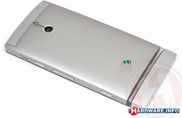 En dat moet ook wel, want de achterzijde van het toestel is grotendeels van metaal. Dit maakt dat de Xperia P een erg stevig toestel is, dat bovendien prettig aanvoelt. De iets bol lopende achterzijde wordt onderbroken door het Sony Ericsson logo, dat dus ook op de nieuwe toestellen nog altijd gebruikt wordt. Daarnaast vinden we aan de achterzijde ook de camera en led-flitser.