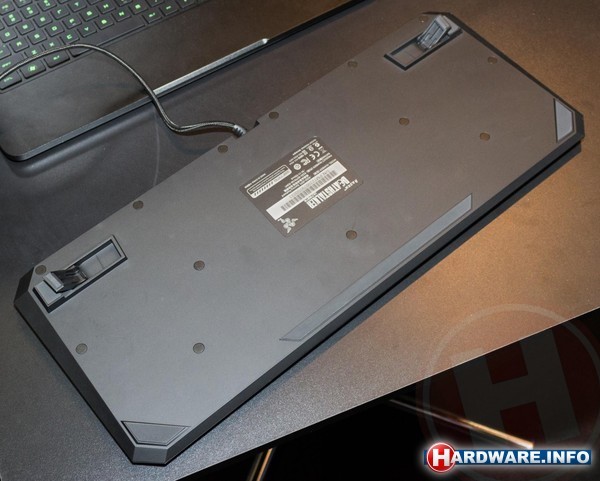 De kabel is gesleeved voor een meer exclusieve look en aan de onderkant vinden we twee pootjes waarmee de Death Stalker ook in de hoogte versteld kan worden. De toetsen zijn van het chiclet type en voorzien van achtergrondverlichting in meerdere kleuren. Daarnaast kunnen tot tien toetsen tegelijk ingedrukt worden.