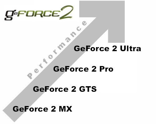 Onderstaande afbeelding schept enige duidelijkheid in de recent sterk uitgebreide GeForce 2 reeks van nVidia:
