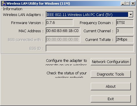 Nadat Windows van de benodigde drivers voor het PCMCIA-kaartje voorzien is, kan de wireless-LAN utility geïnstalleerd worden. De utility werkt goed, maar vind ik net wat minder handig functioneren dan de utility die Dynalink bij haar WLAN producten heeft gestopt. De utility van Sitecom heeft als extra wel (meer) diagnostische gegevens. Zo kan bijvoorbeeld worden gecontroleerd welke kanalen (en bijbehorende frequentie gebieden) het beste functioneren en dus aanbevolen worden om te gebruiken voor het WLAN. Ook heeft de maker van de utility gedacht aan een Access Point browser, waarmee gezocht kan worden naar alle aanwezige Access Points in de buurt. Met de Link Quality Test kan de communicatie tussen draadloze devices worden getest door simpelweg de MAC adressen van de kaartjes in te voeren.