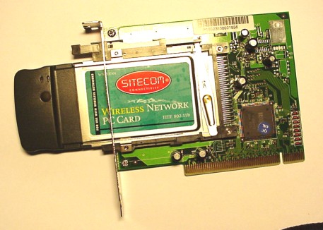 Ook Sitecom heeft een PCI-adapter voor het PCMCIA-kaartje. De constructie die Sitecom hanteert om het PCMCIA-kaartje in de adapter te schuiven, komt een stuk robuuster over. Zo is ook het pinnetje (bekend van de notebook) aanwezig. Op deze manier kan het PCMCIA-kaartje gemakkelijk uit de PCI-adapter worden verwijderd. Net als bij de Dynalink-producten dient eerst een driver voor de adapter te worden geïnstalleerd (Windows herkent de Ricoh Cardbus Controller) en daarna kan dezelfde installatieprocedure als voor het PCMCIA-kaartje worden gestart.