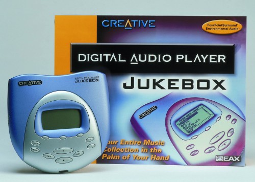Intussen is die gearriveerd: een tijdje geleden heeft Creative in Europa de Digital Audio Player Jukebox ofwel D.A.P. Jukebox geïntroduceerd. Deze portable MP3-speler maakt gebruik van een interne harddisk met een capaciteit van 6 GB, wat gelijk is aan zo’n 150 CD’s (100 muziek!) bij de meest gebruikte 128 kbps MP3-kwaliteit.