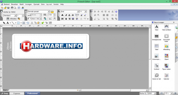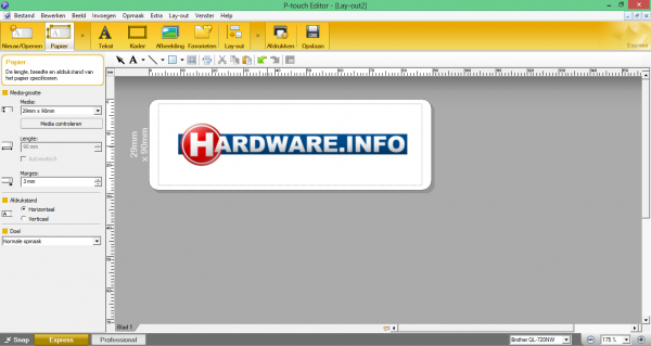 De Express-modus van de P-Touch Editor 5.0 is behoorlijk compact.