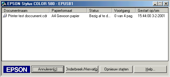 Het grote nadeel van de Epson drivers (en dat geldt helaas niet alleen voor dit model) is dat de driver zelf voorziet in een print-queue. Zodra men een printopdracht geeft, worden spontaan twee Epson schermpjes geopend: eentje voor de queue en een voor de status van de printer. Helaas zijn deze met geen mogelijkheid uit te schakelen en een poging om ze af te sluiten resulteert in een vraag of de printopdracht geannuleerd moet worden. Vervelend�