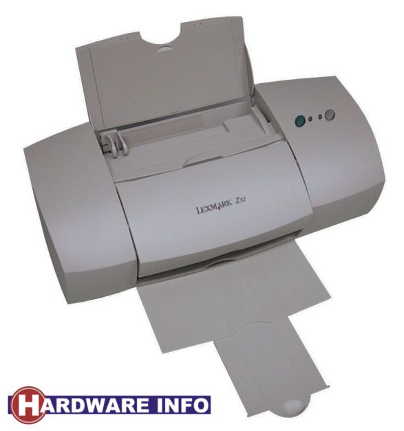 Lexmark leverde ons de Z32. Dit is, evenals alle andere printers in deze test, een CMYK-printer. CMYK staat voor de gebruikte kleuren (in het engels): cyaan, magenta, yellow, black. Helaas is de vormgeving beduidend minder kleurig: de Z32 vertoont een grote overeenkomst met een broodtrommel; zelfs de kleur zou een leuk modelletje van Brabantia niet misstaan. Deze weinig spannende vormgeving is helaas redelijk gangbaar bij printers. De beloofde resulutie van 1200x1200 is verre van verkeerd, en ook deze printer kan bidirectioneel (heen van links naar rechts, en terug van rechts naar links) afdrukken, evenals alle andere printers in deze test, wat de afdruksnelheid ten goede komt. Qua papierlades lijkt de constructie erg op die van de Epson: het papier wordt horizontaal in de invoer gezet, en komt verticaal op een opvangsteun. Deze is gelukkig groot genoeg om het papier fatsoenlijk te ondersteunen. De printer is verder voorzien van een externe voeding en zowel een parallelle als een USB-poort. De printer heeft zelf geen printkoppen, deze zitten in de cartridges. Als je deze vernieuwt, heb je meteen nieuwe koppen.