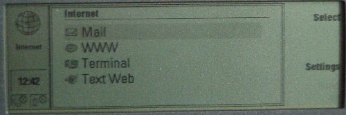 Naast de optie ‘WWW’ vinden we onder het kopje ‘internet’ ook de optie ‘mail’. Hiermee kan, indien de instellingen goed zijn, de e-mail worden gelezen en verstuurd via de mobiele telefoon. Dit gaat een stuk gemakkelijker dan via een normale standaard GSM, maar lange e-mails kunnen toch beter op de PC worden getypt en verstuurd. Verder vinden we onder het kopje ‘internet’ nog de optie ‘terminal’ en ‘text web’. Met de optie ‘terminal’ kan verbinding worden gemaakt met een PC op afstand (vergelijkbaar met telnet). Via ‘text web’ kan informatie van internet worden opgehaald door middel van SMS. Er kan hier bijvoorbeeld gekozen worden voor diensten van Nokia of de netwerkoperator.