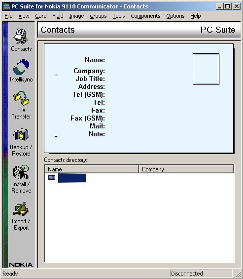 De meegeleverde PC suite zorgt voor een uitwisseling van onder andere het adresboek. Leuk extraatje is dat met de software ook een foto (in bmp formaat) aan een persoon kan worden toegevoegd die vervolgens op de Communicator zelf ook te zien is. De PC suite kan ook zorgen voor de installatie van extra software en het maken van een back-up van de data die op de Communicator staat.