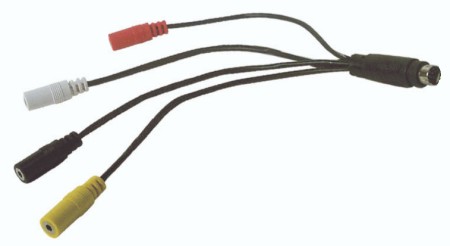 Het verloopkabeltje biedt vier aansluitingen. Allereerst natuurlijk twee aansluitingen voor de twee voor- en de twee achterspeakers. Doordat deze gewoon als jack-plug uitgevoerd zijn, kan 95% van de vierkanaals speakersets zonder problemen direct op de Fortissimo II aangesloten worden. Erg handig is dat er ook nog een aparte koptelefoon uitgang is: in tegenstelling tot de normale uitgangen is deze actief versterkt, zodat er genoeg volume uit de koptelefoon kan komen. De laatste connector van de verloopkabel is voor de microfoon ingang.