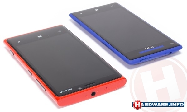 Of het de invloed van Windows (Phone) 8 is, waarbij op het startscherm gebruik gemaakt wordt van felgekleurde tiles weten we niet, maar zowel HTC als Nokia heeft ervoor gekozen hun high-end Windows Phone 8 toestellen beschikbaar te maken in sprekende kleuren. HTC houdt het met de 8X vooralsnog beperkt tot zwart en donkerblauw, maar Nokia’s Lumia 920 is behalve in het zwart ook te koop in wit, rood en geel. Opvallende kleuren om een statement mee te maken. Wij hadden voor onze review de beschikking over de blauwe versie van de HTC 8X en de rode Lumia 920.