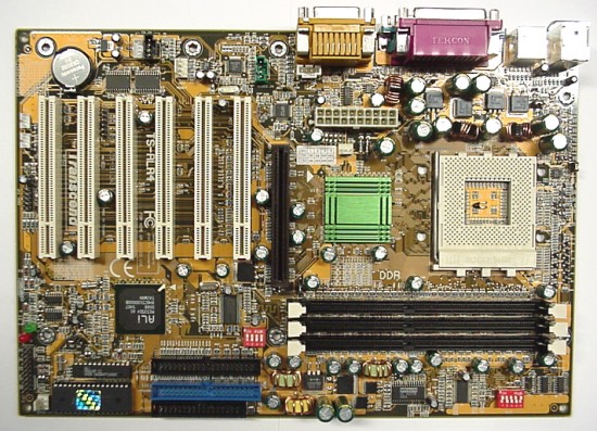 Ook Transcend heeft ervoor gekozen om zes PCI-sloten op het moederbord te verwerken en geen CNR of ACR slot. Een goede keuze want een zesde PCI-slot is in mijn ogen nuttiger dan een CNR slot. Om de kosten van het moederbord laag te houden, heeft Transcend alleen maar DDR-geheugenbanken op het moederbord geïntegreerd, terwijl de ALi chipset het ook toestaat om DDR én SDR geheugenbanken tegelijkertijd op het moederbord te plaatsen, zoals onder andere ASUS en MSI dat hebben gedaan.