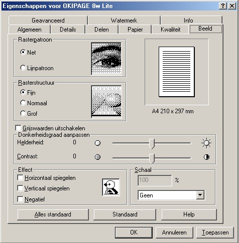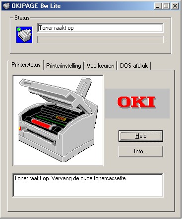 OKI geeft aan dat met de printer ongeveer 1500 vellen kunnen worden afgedrukt. Ook nu vinden we weer dat dit aantal een stuk hoger ligt, zeker wanneer er even met de tonercartridge wordt geschud als deze bijna op is. Wie denkt met alleen deze goedkope cartridges veel te kunnen printen, komt bedrogen uit. Na ongeveer 10000 pagina’s te hebben geprint moet de drum namelijk vervangen worden die een paar honderd gulden kost.