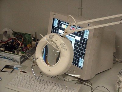 In andere tests wordt vaker geschreven dat de desbetreffende hardware onder de loep is genomen. Deze zegswijze hebben we bij deze monitortest letterlijk zo geïmplementeerd. We maakten gebruik van een sterk vergrotende loep om de resultaten van de testbeelden zo goed mogelijk te kunnen beoordelen.