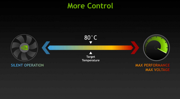 Met de nieuwste versie van verschillende overkloktools kun je als gebruiker de werking van GPU Boost 2.0 aanpassen. Zo kun je zelf de doeltemperatuur veranderen, van 80 graden naar bijvoorbeeld 85 graden. Het is echter ook mogelijk om het maximale verbruik te verhogen: wie het power target verhoogt van 100% naar bijvoorbeeld 105% zorgt ervoor dat GPU Boost 2.0 wanneer de temperatuur het toelaat de kaart tot maximaal 265 watt laat verbruiken.