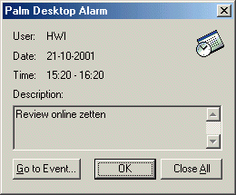 Bij de 4.0 desktop wordt ook de "Palm Desktop Alarm Manager" meegeleverd die rustig in de systemtray zit totdat een afspraak die al eerder ingevoerd werd actief wordt.