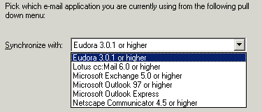 Voordat we deze applicatie kunnen gebruiken moeten we eerst op de PC ingesteld hebben vanuit welke applicatie we mail willen ontvangen en waar nieuwe mail heen gestuurd moet worden. Zoals we in het onderstaande figuur kunnen zien hebben we een zes tal mogelijkheden.