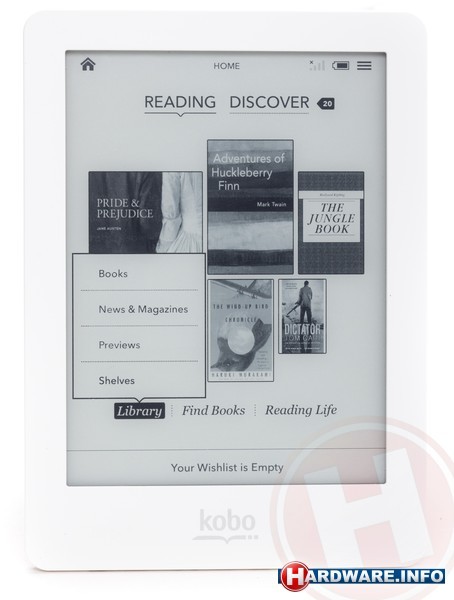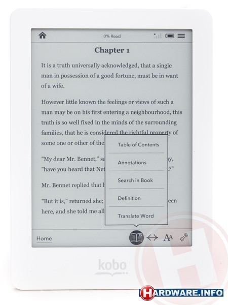 Je kan direct vanaf de reader boeken aanschaffen (de catalogus telt 3 miljoen titels, uiteraard voornamelijk Engels, maar het Nederlandse aanbod is zeker niet klein), maar ook gewoon surfen op internet met de ingebouwde browser. Toegang tot internet gaat gewoon draadloos, 802.11n is ingebouwd. Uiteraard zijn daar de nodige beperkingen aan; sommige sites worden niet goed weergegeven, maar even snel iets opzoeken op Wikipedia of nalezen op nu.nl is prima mogelijk. Ook de Hardware.Info site doet het heel aardig.