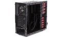 De Thermaltake Commander MS-III bevindt zich qua prijsstelling (gemiddeld net 50 euro) in het midden van het testveld. Het is een vrij sober vormgegeven behuizing, met een speelse ronding aan de voorzijde onderaan, en een grappig klein venster in het linkerpaneel. Daar treffen we ook één USB 3.0-aansluiting, naast een USB 2.0-exemplaar en de audio in- en uitgangen. Van binnen is de Commander MS-III netjes zwart gespoten. Het gebruikte staal voelt wat dun aan en dat is ook terug te zien in het bescheiden gewicht. Toch is de Commander MS-III voldoende stevig, terwijl we amper scherpe randjes kunnen vinden. Wel missen we goede mogelijkheden kabels weg te werken, al is er een opening voor een CPU-koeler-backplate. Er is voldoende inbouwruimte, ook voor lange videokaarten.
