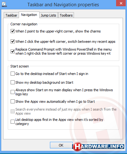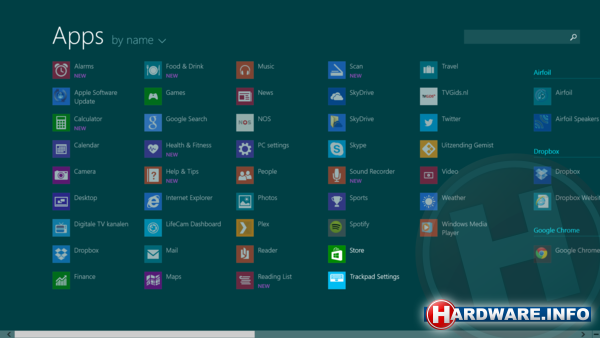 Maar je hebt meer keuzemogelijkheden. Het subtiele pijltje naar beneden op het Startscherm brengt je direct naar het overzicht van al je apps. Dat overzicht kun je ook als je bij de instellingen gaat kijken van de taakbalk direct te zien krijgen. Ook kun je er voor kiezen om door te starten naar de desktop, in plaats van het Startscherm. Een functie die veel gebruikers zullen weten te waarderen. Ook starten in het ‘all apps’ menu is mogelijk. Je desktopachtergrond kan nu ook dienen als achtergrond voor het Startscherm, waardoor het verschil tussen die omgeving en je desktop minder wordt.