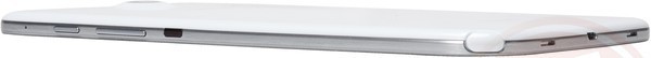 De aansluitingen en knoppen zijn hetzelfde als bij de Galaxy Tab3 en zitten ook globaal op dezelfde plek. Ook de Galaxy Note 8.0 maakt gebruik van de fysieke knop en de twee capacitieve knoppen. De camera's lijken ook dezelfde te zijn. Althans, aan de voorkant zit er eentje van 1,3 MP en aan de achterkant eentje van 5 MP. De camera aan de achterkant zit op een net iets handigere plek dan bij de Tab3. Daar zit hij namelijk op de hoek, terwijl hij bij de Note 8.0 middenop zit. Je houdt daar net iets minder makkelijk je hand of vinger voor. Ook op deze Galaxy Note 8.0 zit een IR-sensor.