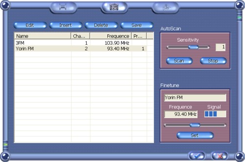 In het tweede venster kunnen alle voorkeuze zenders eenvoudig ingevoerd worden en kan aan alle zenders een naam gegeven worden. Erg jammer is dat de WinFast software geen RDS ondersteund, zodat de namen van radio-stations niet automatisch opgevangen kunnen worden.