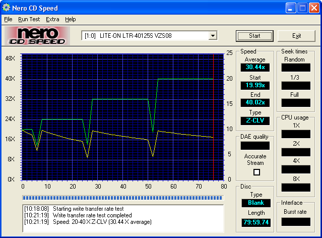 Om CDR’s op de maximale snelheid te branden wordt gebruikt gemaakt van Zone-CLV. Om Zone-CLV te kunnen toepassen heeft de LiteOn brander Smart-Burn in huis. Smart-Burn zorgt ervoor dat de CD’s niet mislukken op het moment dat het brandproces tijdelijk stop wordt gezet en de snelheid omlaag valt (zie de screenshot hierboven).
