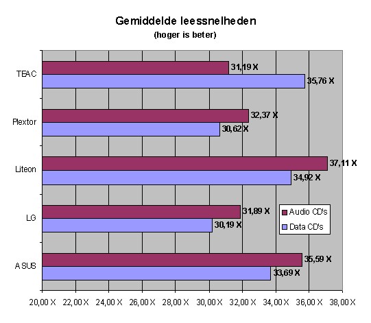 Op het gebied van digitale audio extractie weet de LiteOn brander iedere concurrent achter zich te laten. Ook bij het lezen van data-CD’s presteert hij niet slecht, al moet hij de Teac brander wel net even voor laten gaan op dit gebied.