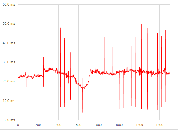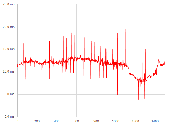 Met drie Full HD schermen en Medium settings komt de 290X uit rond de 90 fps en ook dat is beter dan de Tital. Ondanks wat pieken ligt de 99ste percentiel frametijd eveneens onder die van de Titan. BF3 in 3x Full HD op Ultra settings met 4x AA zit met zo'n 45 fps gemiddeld op de grens van "kan wel, kan niet". Zoals we in de frametime grafiek zien worden de meeste frames ruim binnen de 30 ms berekend, maar zijn er wat pieken boven de 40 ms. Niks ernstigs, maar niet 100% soepel dus.
