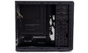 Achter het rechterpaneel is een groot rooster aanwezig met ophangpunten voor ventilators - of een 240 mm radiator. Standaard zijn twee casefans gemonteerd, 120 mm exemplaren. Je kan er nog twee kwijt aan de bovenkant, maar ook daar past een 240 mm radiator. Er is er één aan de achterkant geplaatst, eventueel ook te vervangen door een radiator. In het linkerpaneel kan je ook nog een fan kwijt. Koelopties en mogelijkheden te over dus, inclusief desgewenst drie waterkoelers, al kunnen we ons niet voorstellen dat iemand die investering zou doen in een kast in deze prijsklasse.