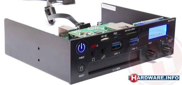Voor ruim vier tientjes haal je de Scythe Kama Panel 3.1 in huis, een van de (weinige) uitgebreidere function panels in de test. Maar twee fan controllers en temperatuursensors, een minuscuul schermpje voor weergave van ventilatorsnelheid en temperatuur, maar ook twee USB 3.0 poorten en audio-aansluitingen. Daarnaast een geheugenkaartlezer voor SD en MS-geheugenkaartjes.