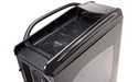 Extern vallen direct de aluminium handgrepen en staanders op, kenmerkend voor deze lijn. Achter het grote mesh front gaan twee 12 cm ventilators schuil. De bovenste daarvan reikt tot de onderste 5,25” ruimte, die dus niet bruikbaar is in de standaardconfiguratie. Aan de bovenrand bevinden zich de front-aansluitingen, verborgen achter een luikje. Verder treffen we aan de bovenzijde nog een 14 cm ventilator, en nog een 12 cm exemplaar aan de achterkant. Het linkerpaneel bevat een flink venster.