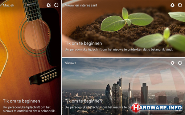 De Magazine UX functie biedt links van de standaard homescreens één of meerdere homescreens die bestaan uit een aantal grote tiles die opgebouwd zijn uit foto's of grote iconen. De inhoud van deze tiles verandert dynamisch. De Magazine UX combineert basisfunctionaliteit van de tablet zelf (agenda, mail en office applicaties) met online content via Flipbook.