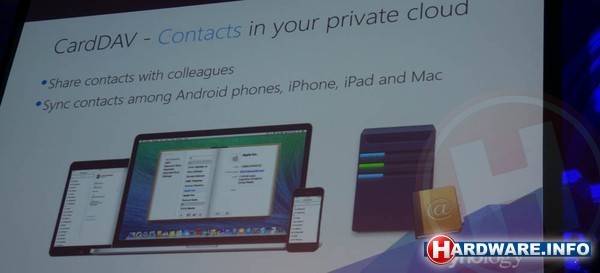Ook kun je contactgegevens verzamelen, syncen en sharen dankzij de ingebouwde CardDAV-ondersteuning.
