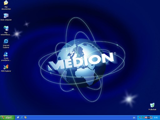 Na het opstarten blijkt dat Aldi de 120 GB harddisk standaard heeft opgedeeld in drie partities. De C: partitie is 55,8 GB groot en bevat alle programma's en documenten. De D: partitie is 46,8 GB groot en bevat backups van de installatiebestanden van alle software. Het is zeer aan te raden deze bestanden op een CD of DVD te branden, zodat ze daarna van de harddisk verwijderd kunnen worden. De E: partitie van 9,0 GB bevat een image van de PC zoals die uit de fabriek komt. Mochten er zich problemen voor doen, dan kan dankzij de recovery-tool dit image eenvoudig teruggezet worden.