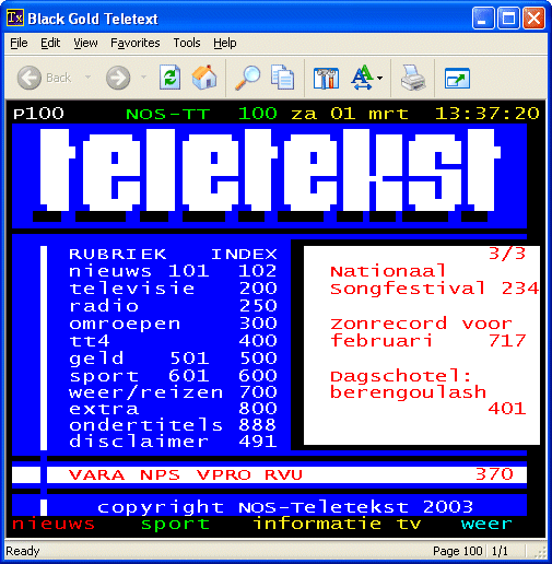 Om teletekst te gebruiken wordt Black Gold Teletekst gebruikt. Dit is een zeer gebruiksvriendelijk programma, dat overigens prima integreert in Power DVR, en qua gebruik veel overeenkomsten toont met een internet browser. Zo is het mogelijk favorieten aan te maken, een pagina terug te bladeren etcetera. Het is niet mogelijk zoals op de meeste TV's om het teletekst beeld doorzichtig over het TV-beeld te projecteren.