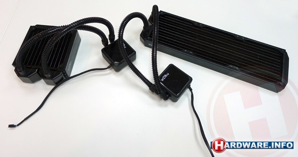 Er komen drie modellen: een met een 120 mm radiator, een met een 240 mm radiator en een met een 360 mm radiator. Wij kregen de eerste en de laatste te zien.