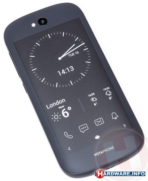De YotaPhone 2 die wij hebben getest draait Android 4.4.3 en Yota Devices heeft verder weinig gesleuteld aan het besturingssysteem. Zo zien we het eigenlijk het liefst. Eigenlijk het enige wezenlijke dat is toegevoegd, zijn de apps waarmee je het e-ink-scherm achterop kunt instellen: YotaCover en YotaPanels. YotaCover zorgt ervoor dat er geen gevoelige informatie zichtbaar is op het e-ink-scherm, bijvoorbeeld als je aan het bellen bent. Dat scherm gaat namelijk niet uit, iets wat ook niet nodig is aangezien het alleen stroom verbruikt op het moment dat het van weergave wisselt. Je kunt grotendeels zelf kiezen wat je daar af wilt beelden.