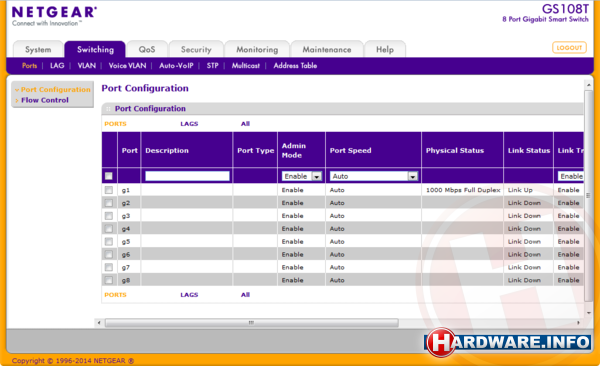 De managementmogelijkheden zijn voor de meeste switches identiek en niet extreem uitgebreid. De nadruk ligt met name op QoS en VLAN’s, twee zaken die ook in het thuisnetwerk van pas kunnen komen. Als je de Quality of Service bijvoorbeeld zo instelt dat jouw laptop altijd de hoogste prioriteit heeft, heb je er geen last van als iemand anders in huis volle bak gaat downloaden. Met name als je online gamet of video’s streamt, is een gegarandeerde en stabiele bandbreedte cruciaal.