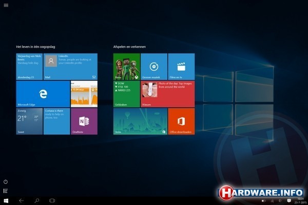 Continuum laat het besturingssysteem de best passende interface aannemen, afhankelijk van welke invoerapparatuur beschikbaar is. Naast de desktopinterface die je overal in dit artikel tegenkomt, is er namelijk ook de zogenaamde tabletmodus. Daarin wordt het startmenu full-screen, draaien apps niet langer in een venster en wordt de taakbalk versimpeld weergegeven. Deze tabletmodus is natuurlijk bedoeld voor echte tablets, waar je via USB of Bluetooth een muis en toetsenbord aan kunt koppelen, maar ook voor detachables en convertibles.