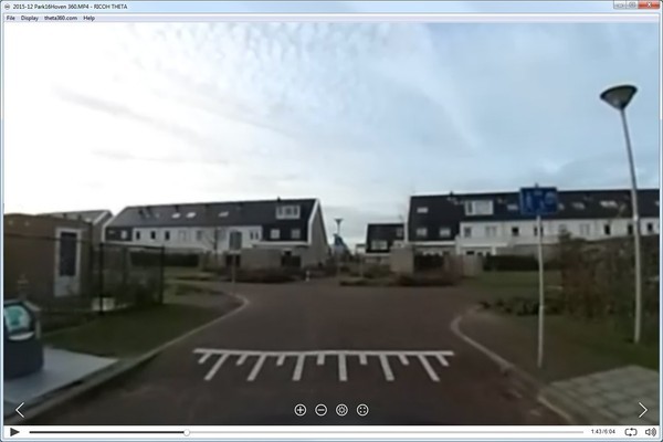 Voordat je deze beelden als een 360 graden video kunt bekijken moet de video eerst omgezet worden naar een panorama-opname. Daarvoor is de gratis 'Ricoh Theta' app voor PC of Mac vereist. Deze app kan gebruikt worden om 360 graden foto's en video's te bekijken, maar dus ook om ruwe video's om te zetten naar 360 graden video's. Dat omzetten gaat eenvoudig: je sleept de video naar de player, waarna je een melding krijgt dat de video verwerkt wordt. Dat omzetten vergt vrij veel rekenkracht. Op onze testlaptop met een Intel Core i7 4700MQ processor en 8GB RAM duurde het omzetten van een minuut video ongeveer anderhalve minuut.