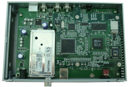 We waren nieuwsgierig hoe de XRecoder er van binnen uit ziet. We wilden graag weten van welke chipsets AOpen gebruik maakt bij dit product en hebben de XRecorder geopend. De onderstaande foto toont de recorder zoals je die ziet wanneer je hem open maakt.