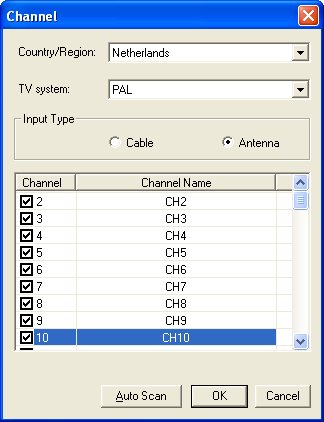Zoals al gezegd levert AOpen bij de VX2000 een programma om direct programma's op te nemen op de PC. Video@home van ULead wordt geïnstalleerd als TV-tuner programma. Na het installeren en het opstarten van het programma kan automatisch gezocht worden naar zenders. Als gebruiker kun je alleen aangeven in welk land je je bevindt en of de TV-zenders van de kabel of van een antenne afkomstig zijn. Het is helaas niet mogelijk om zelf de frequenties in te stellen.
