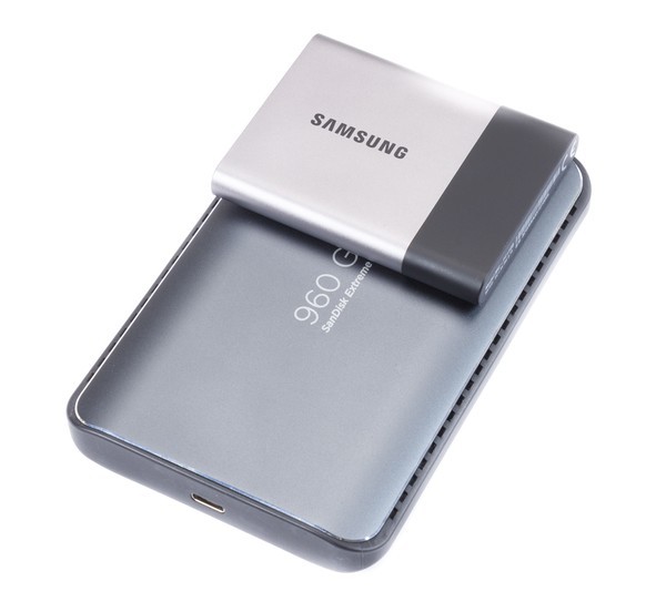 De Samsung T3 is veel kleiner en lichter dan de Sandisk Extreme 900.