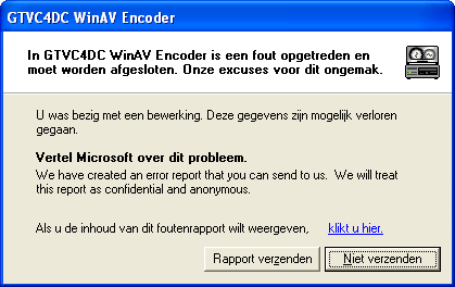 Natuurlijk hebben we wel even gekeken hoe Trust AV Capture zijn beperkte taak er vanaf brengt. Helaas was dit geen onverdeeld genoegen: de opnames zijn op zich in orde, al is de combinatie van lage resolutie en sterke compressie een recept voor compressieartefacten en beeldvervormingen. Zolang de gebruiker het beeld niet groter afspeelt dan de resolutie waarin het is opgenomen, [-is] er echter best naar te kijken. Opvallend genoeg stoort de software zich totaal niet aan het Macrovision geëncodeerde signaal dat onze videorecorder met daarin een koopvideo zou moeten uitsturen: Demolition Man wordt keurig digitaal weergegeven. Wel weer jammer is dat het programma verre van stabiel is, en ons meerdere malen liet zitten met het onderstaande venster:
