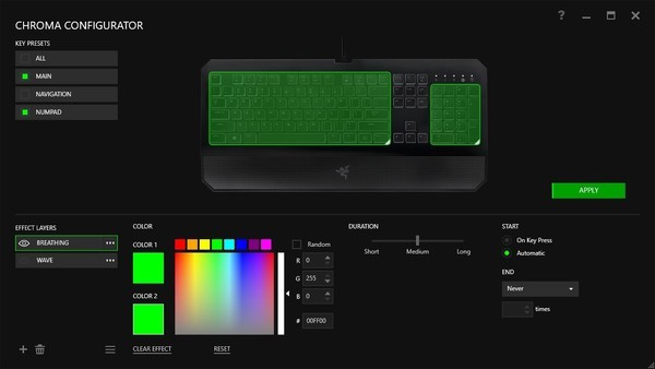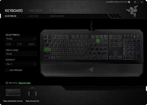 De software met al zijn mogelijkheden is identiek aan die van de recentelijk besproken Blackwidow X Chroma, zoals gezegd op de zonering van de verlichting na. We hebben hieronder nog wat screenshots gemaakt van het programma, maar voor een uitgebreide beschrijving van de mogelijkheden verwijzen we je graag terug naar die review.