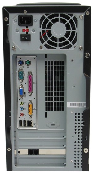 De eenvoudige achterzijde van de QMotion Celeron D.